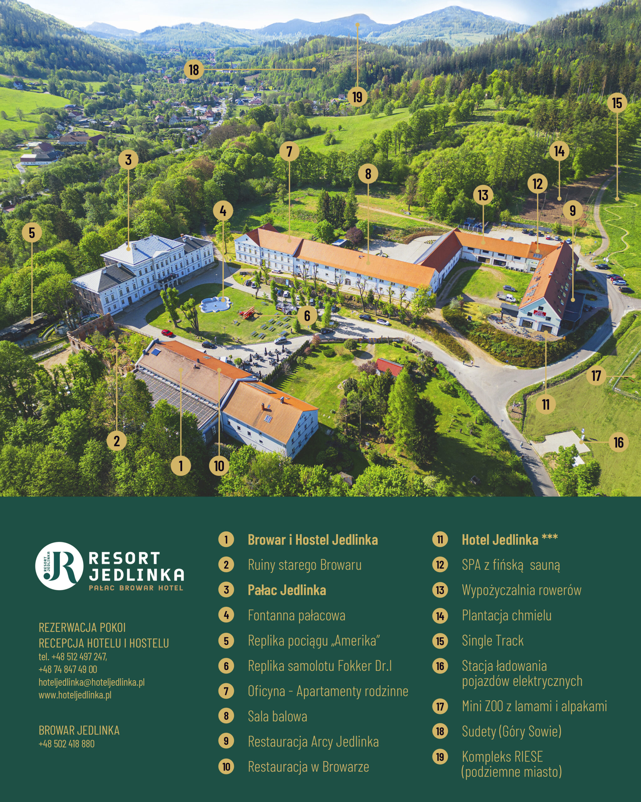 Resort Jedlinka to Pałac, Browar z restauracją i Hotel połączone wspólną przestrzenią, historią i spokojem Gór Sowich.